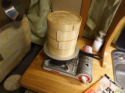 自分の歩く姿を動画で見たらあまりのがに股っぷりにショックを受けたしんこです。 今日はキャンピングカーで楽しむ点心の調理器が進歩したお話。 キャンピングカーで点心を楽しむ クッカーに竹せいろを嵌めて使うのは危なかった 竹せいろを載せる鍋を探す 中…