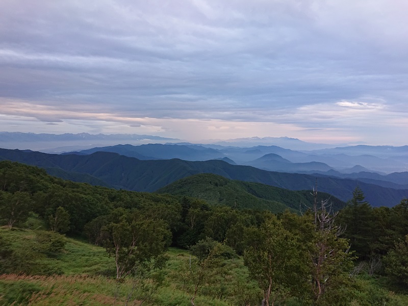 カメラを左へ振るとこんな眺め。遠くの山の稜線が水墨画のようです。