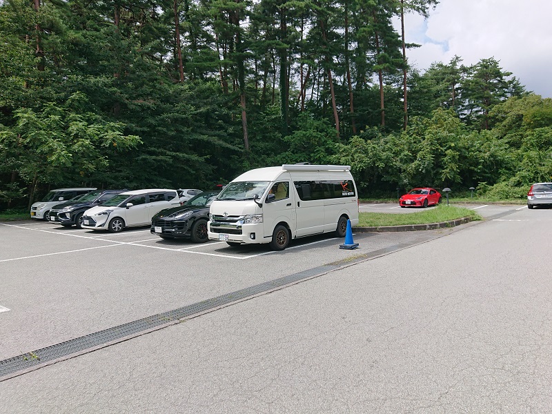 30分ほどでサンメドウズ清里駐車場に到着。駐車場は広大で空いているので大柄なキャンピングカーでも全く問題なし。