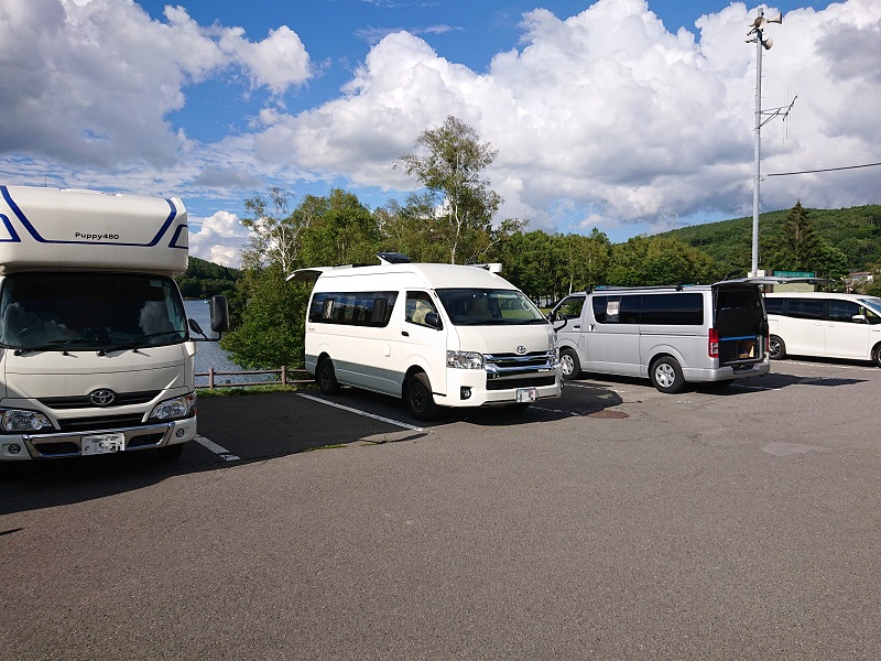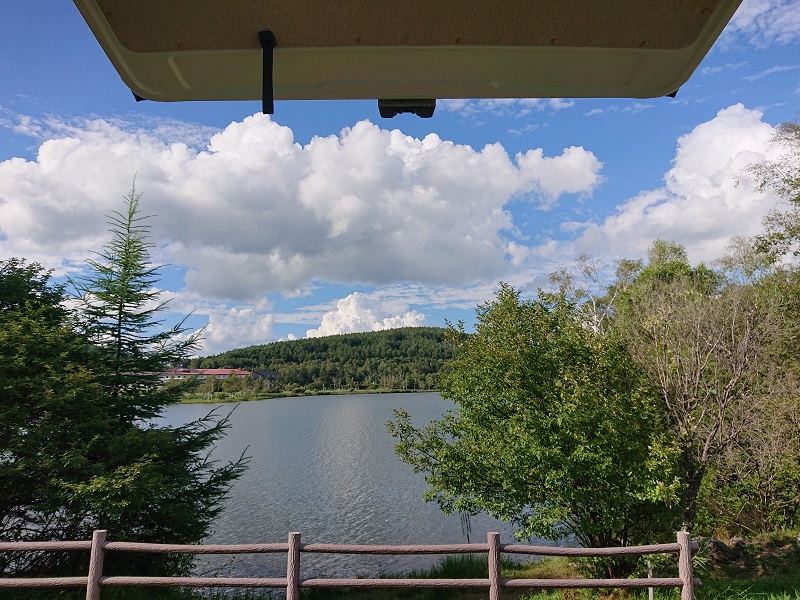 日差しが強くて少し暑いのでリヤゲートを全開にして湖面を渡る風を車内に入れると同時に眺望を楽しみます。