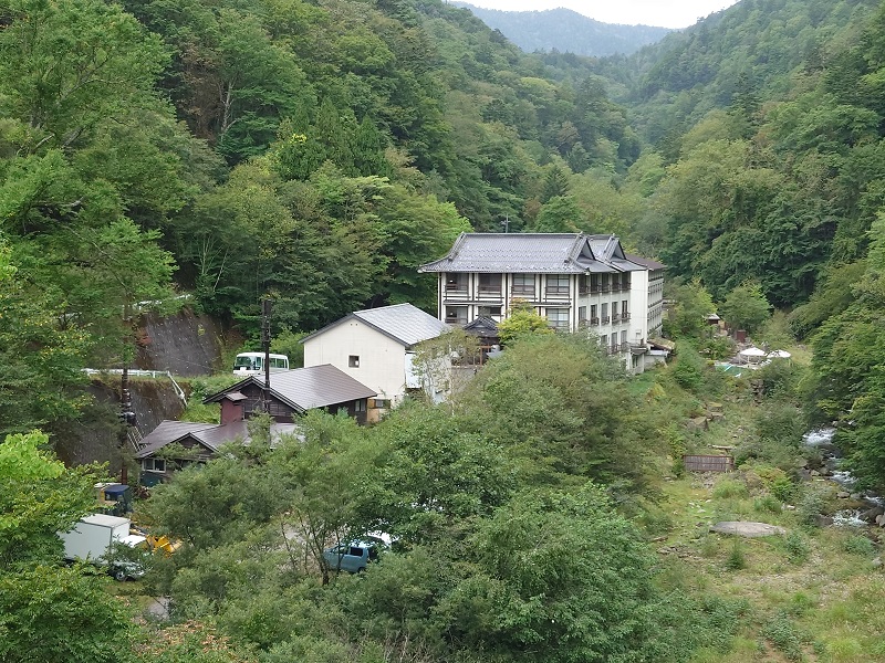 加仁湯の入口から良く見えるので,昨日からずっと気になっていた奥鬼怒大橋を偵察。ゲートで閉鎖されていますが,橋の向こうに続く道も奥鬼怒スーパー林道。